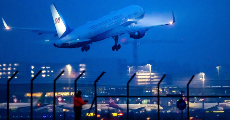 JAV prezidentas Donaldas Trumpas (Donaldas Trampas) ketvirtadienį išvyko iš Šveicarijos, pranešė naujienų agentūros AFP fotografas.